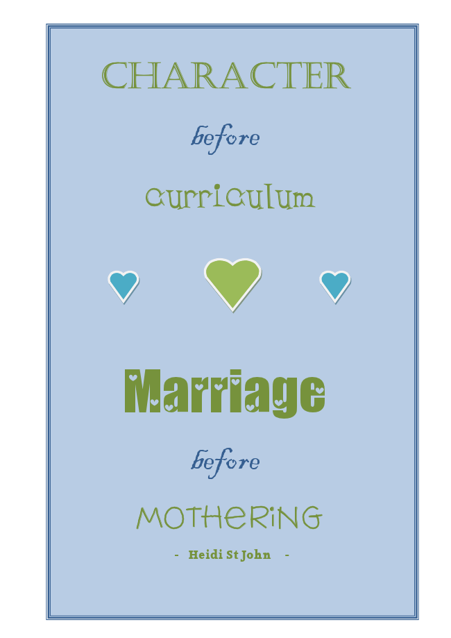 Marriage is one of them. Our relationship with our husband can easily fall by the wayside, if we become immersed in the duties and responsibilities of parenthood and home-schooling. That's not how things are meant to be.